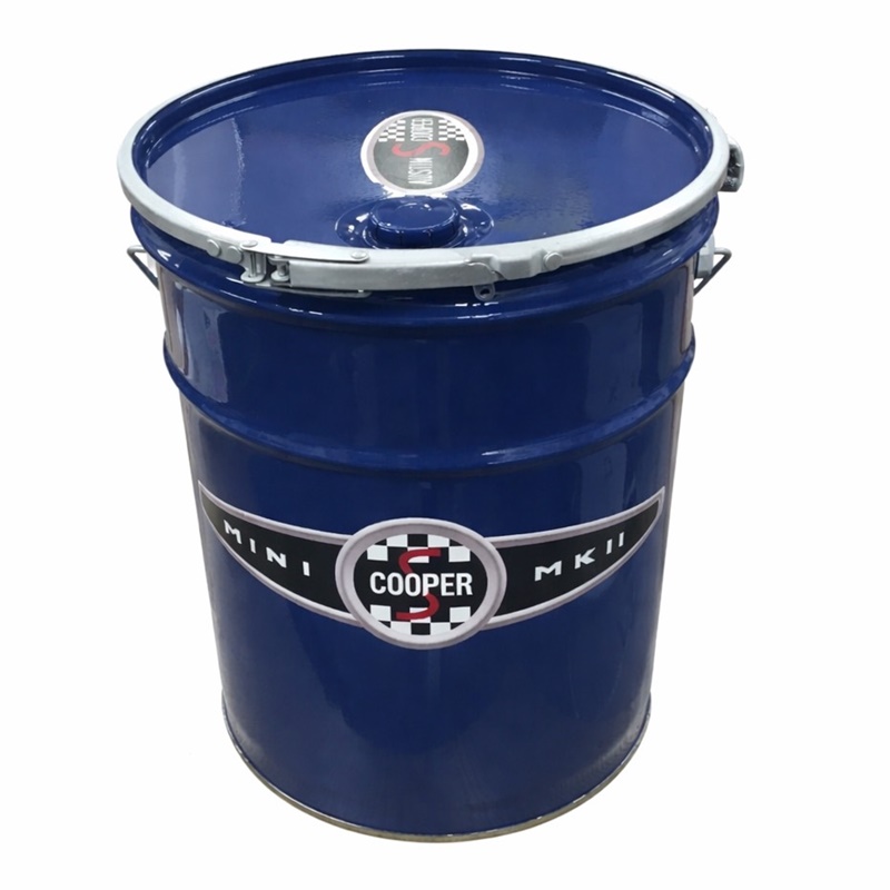 20Lのペール缶を塗装しAUSTIN-COOPER-S MK-2のステッカーを作成し貼り付けた商品になります。