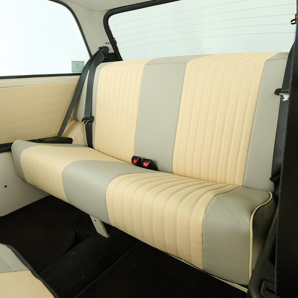 【コメント】MK3スタイルをモチーフにしたデザインで、クラシックな雰囲気にモダンな印象がプラスされたクラシックミニ専用シートカバー。クラシックミニの為に開発されたCABANAシートカバーです。